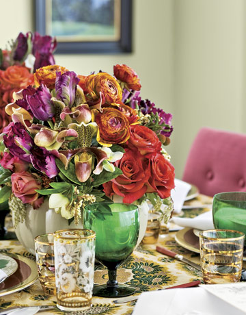 There are many ways to establish the “tone” of a Thanksgiving table, whether it be casual, formal, whimsical, or rustic. One of the easiest ways to do that is by starting with a table arrangement. You may opt to have a professional arrangement created for your holiday table, or instead, you may be in search of inspiration to create your own! Take a look at some examples of different styles of centerpieces that can be used as a starting point from which to “build” the rest of your table. (And, of course, don’t forget to stop by Knotting Hill Interiors to check out our fabulous selection of Thanksgiving decor for your home!)