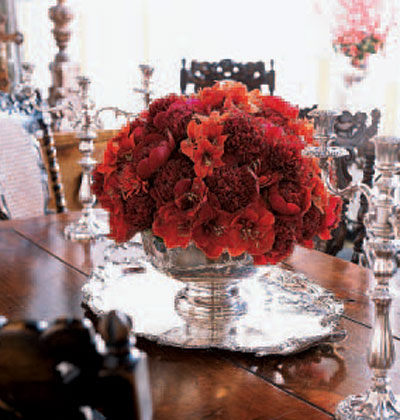 I saved my favorite for last! All of the elements - the bird, the silver, the florals, the candles of different heights - all contribute to the breathtaking outcome of this grouping.