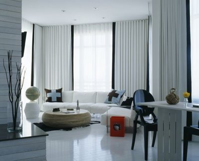 I was so intrigued and entertained by the decor of this unique little oceanfront hotel that I just HAD to share some photos of it (And just so you know, I did take pictures of our actual room with my Blackberry, but they did not turn out as clear as I had hoped, so I borrowed some pictures from the Bungalow website for this post). This interesting hotel is refreshingly colorless, with the exception of some beautifully inserted “pops” of color.