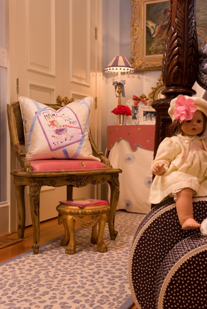 Notice the hand-painted Fancy Nancy pillow in the chair!