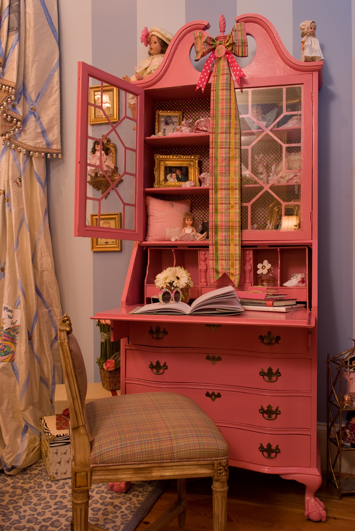 This is a "recycled" piece of furniture that was customized by painting it pink to match this child's space.