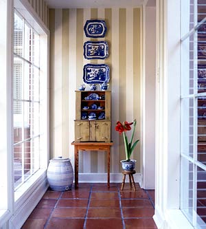 These small wall spaces are given special attention by hanging perfectly-sized plates.