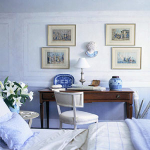 This interesting selection of artwork is hung at eye level and can therefore, be fully appreciated by those viewing it. (All Photos from Better Homes & Gardens)