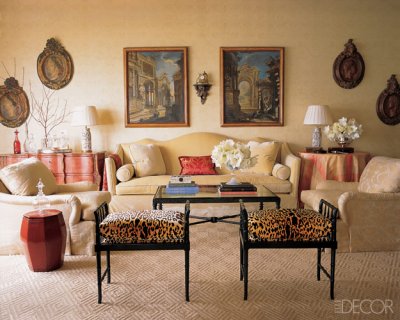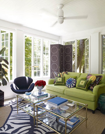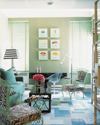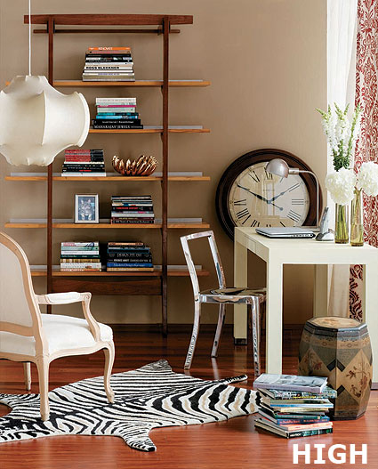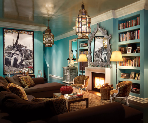 This room, created by Jonathan Adler, adds a touch of the wild with a zebra rug. Photo from House Beautiful.