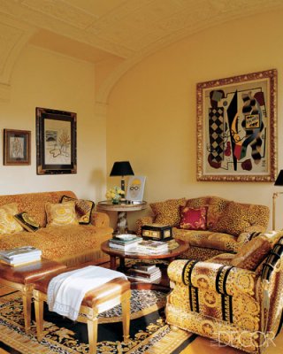 Donatella Versace has no problem adding bold accents of animal print into the decor of her Milan apartment.