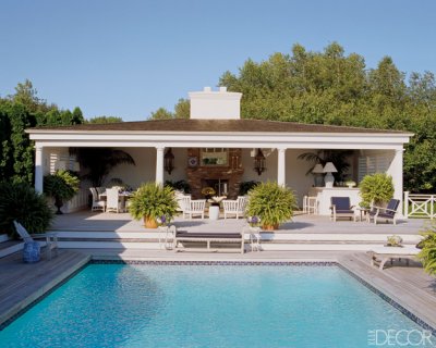 “It’s So Fabulous!” DESIGN ROOM of the Week: My pick for design room of the week is actually an outdoors space that I found on the Elle Decor website. With the end of summer fast approaching, I had to lift my glass one final time to celebrate the exterior rooms that provide the setting for many a barbecue and evening cocktail party! The celebrity owner of this grande Hamptons poolhouse is fashion designer, Dennis Basso, and his partner. It is nothing short of fabulous! To read the full article about this space, click here: A Party-Perfect Poolhouse.