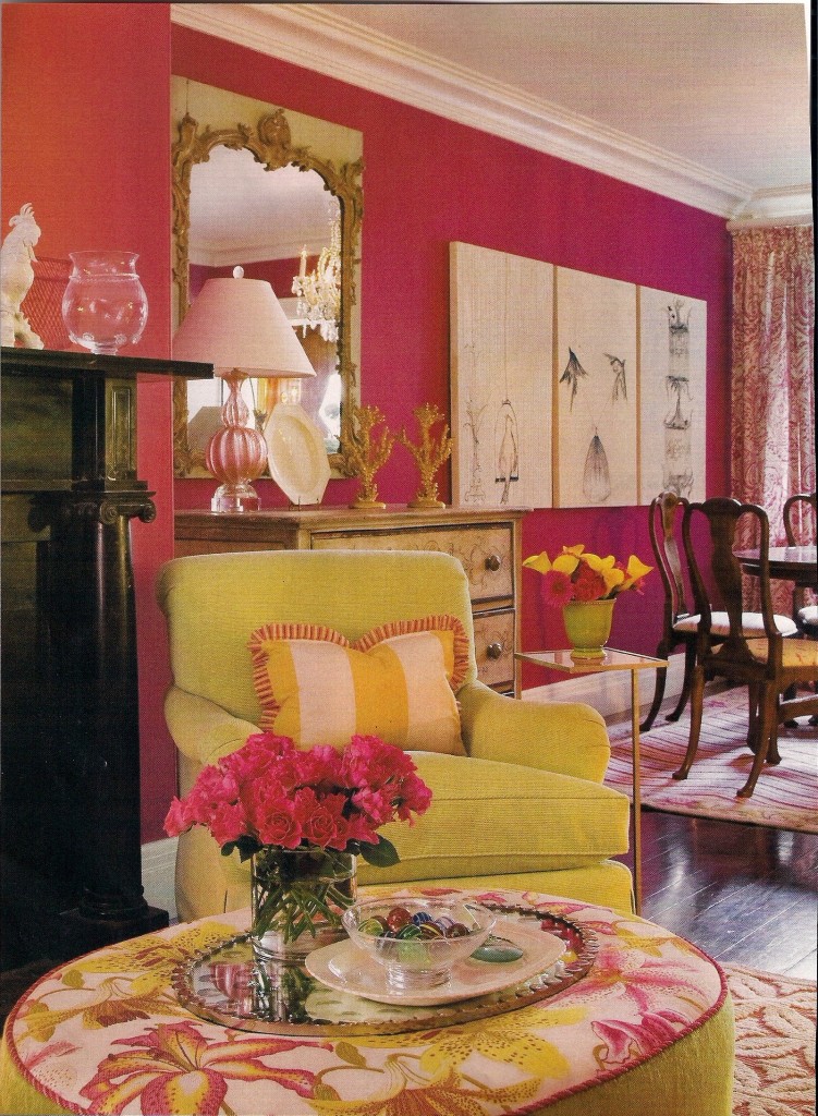 “It’s So Fabulous!” Design Find of the Week:  PINK! It’s everywhere! Although purple is one of the hottest colors of the season, it has brought along with it every imaginable shade of pink! Nearly everyday for the last few weeks, I have found myself admiring this fresh color in some new design capacity. Let’s face it… PINK is just FUN! Although  it is often “too much” to make it the dominant color in a room, inserting pink accents can truly add a unique pizazz to any space. Why not give it a try in YOUR home?! Check out these pictures (from Traditional Home Magazine) of some elegant and inspiring, pink-accented rooms! FABULOUS!
