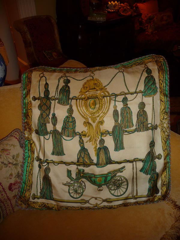 At first glance, you might assume that this is simply a beautiful pillow. However, upon closer investigation, you may be able to tell that it was once a scarf that my sweet friend had made into a custom pillow sham! Isn't that a FABULOUS gift idea?