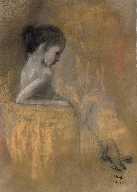 By Sarah Wolfe, also featured at Atlanta Decorators's Showhouse and Gardens 2010, this mixed media piece on paper is named "Morning".